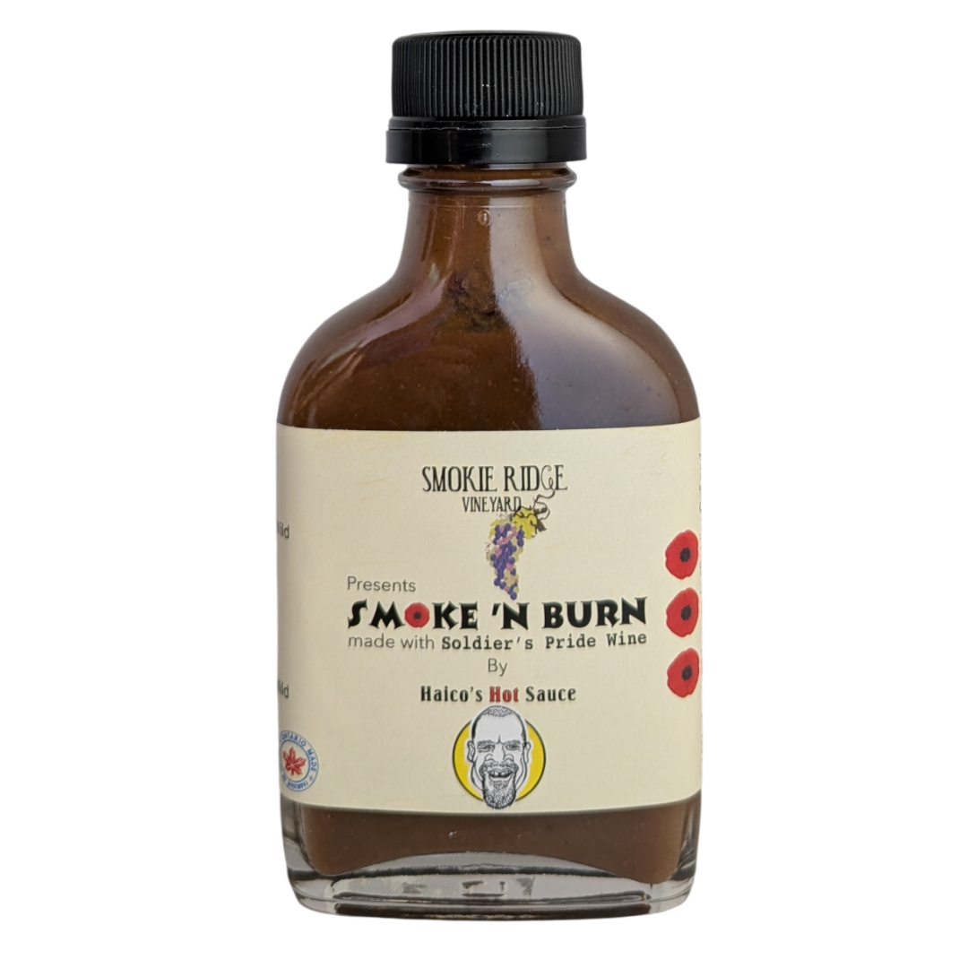 Here to stay by popular demand! A mix of Smoked Jalapeños, Smokie Ridge “Soldiers Pride” red wine and with a flavour that will leave you yearning for more! 15% of the proceeds of this product will be donated to Military Families.